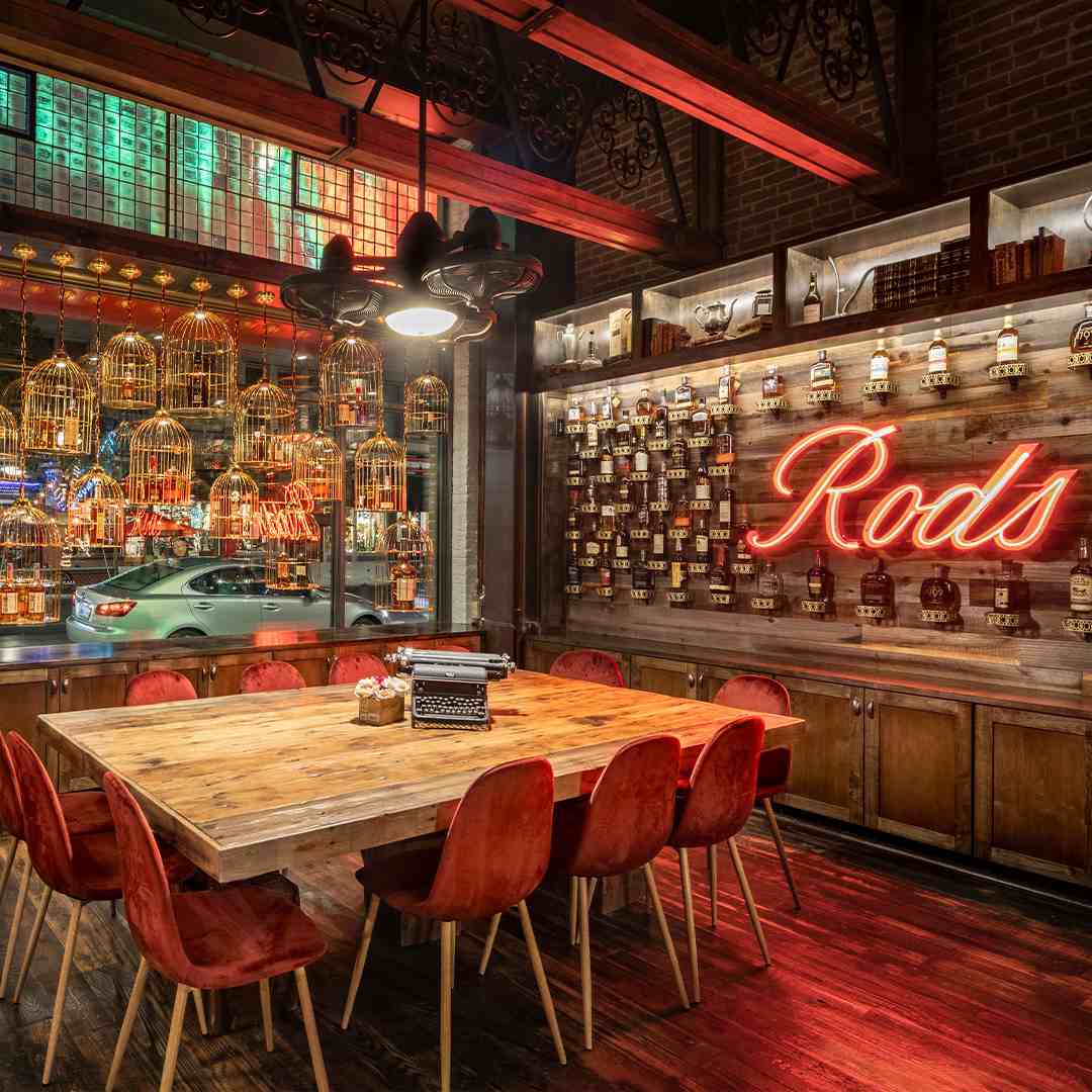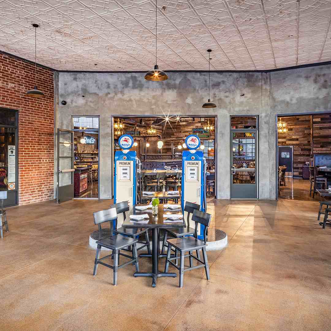 Preserving history, this Bosscat Kitchen location pays homage to the Fraser family’s historic liquor store that resided there for over 70 years: Rod’s Liquor. In fact, this location is rich in history with it being known as the first “horse and buggy repair shop” and additionally the first gas station in Orange County.